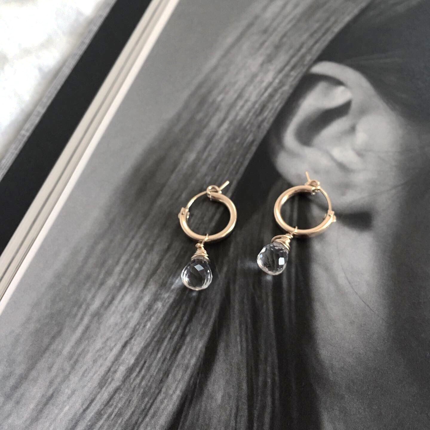 雨しずくを思わせる艶やかなクリスタルに太めのフープを合わせました。