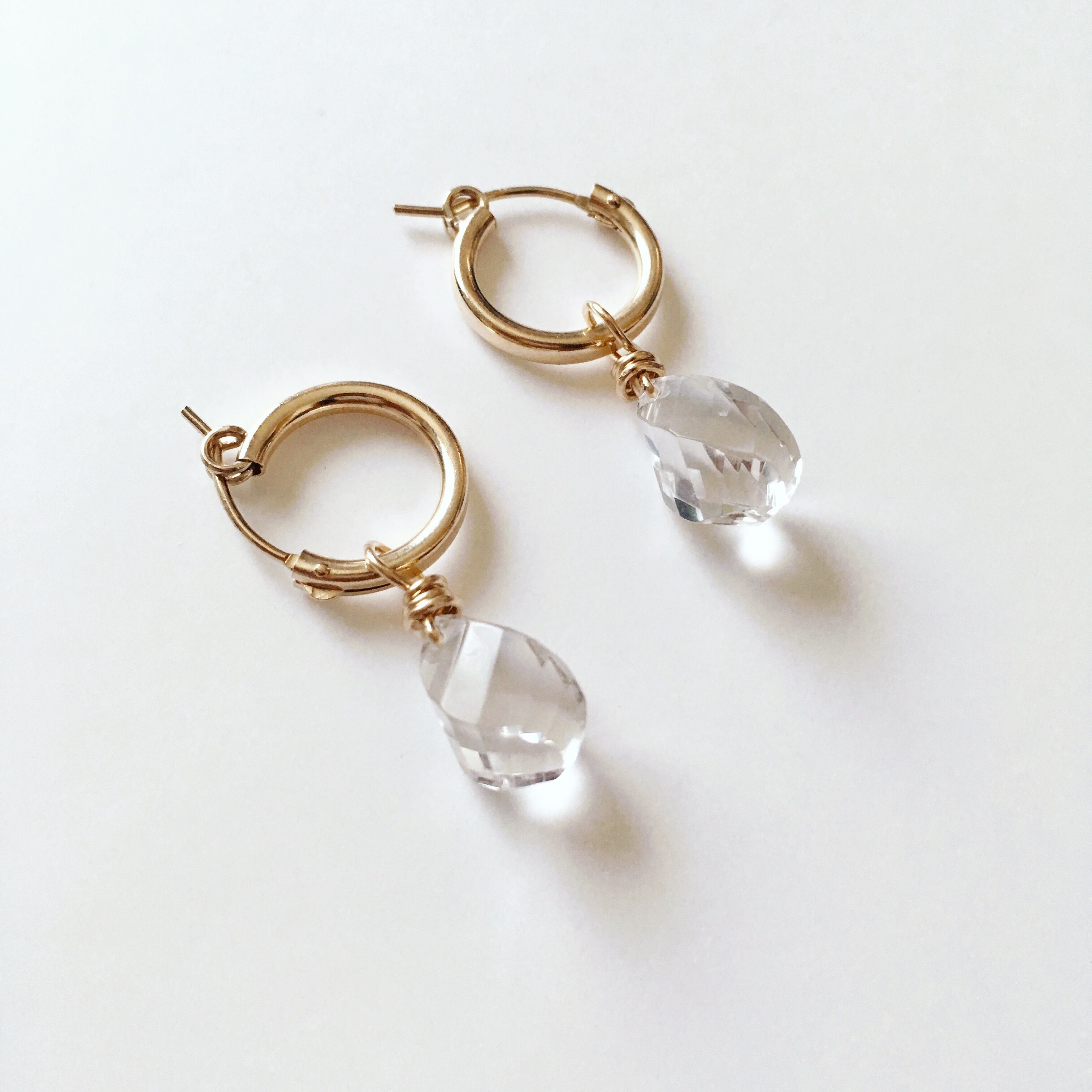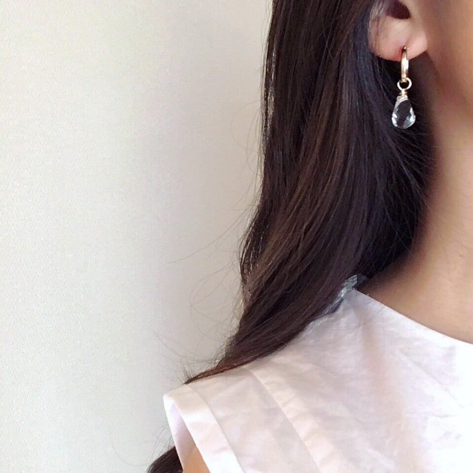 クリスタルクォーツフープピアス / 14kgf
