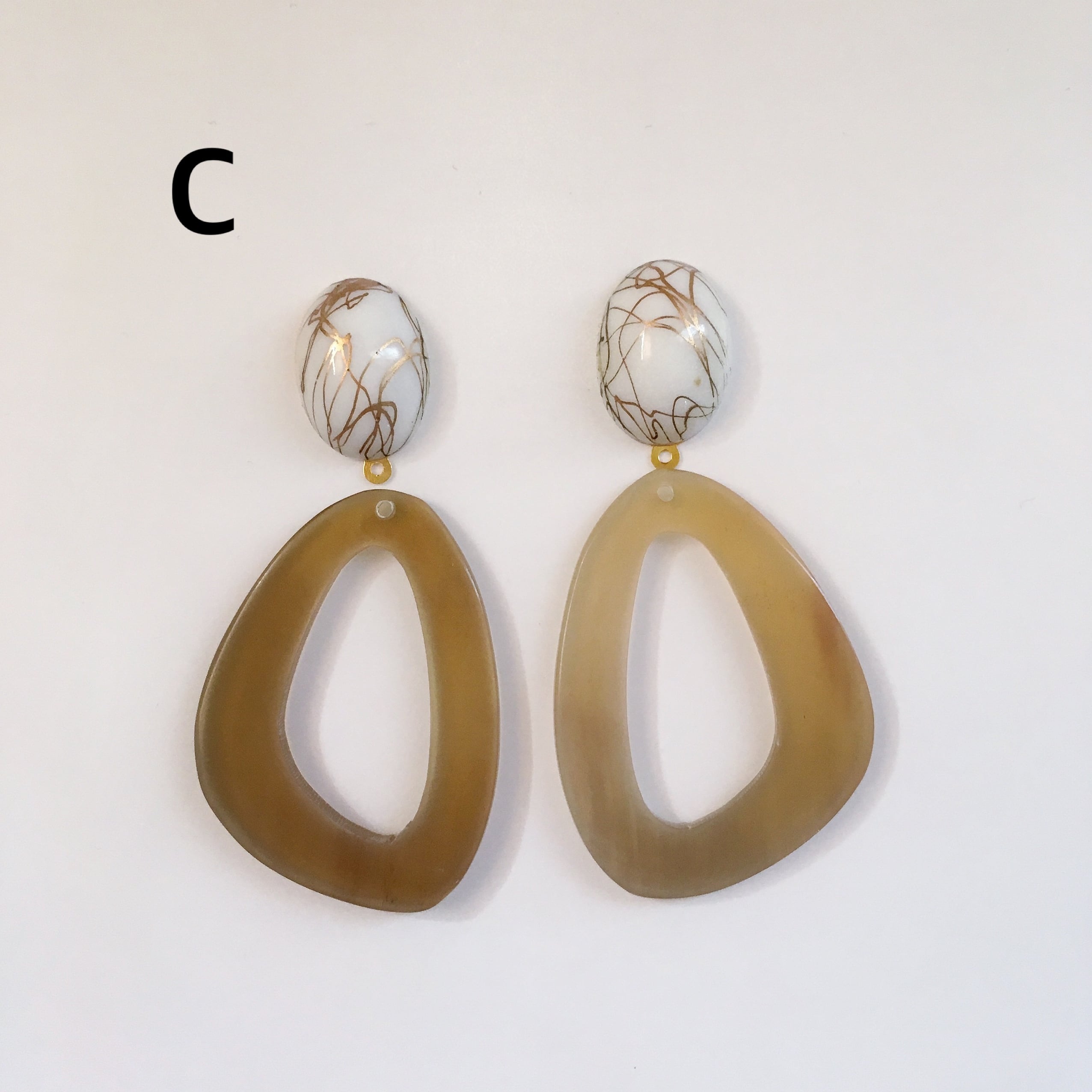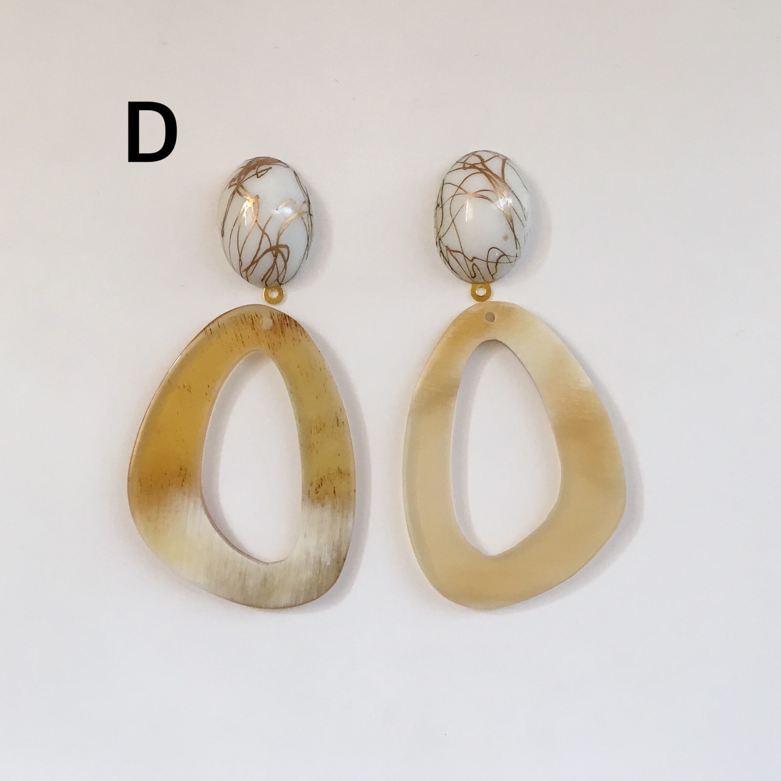 バッファローホーン(水牛の角)と西ドイツのビンテージパーツで仕立てたピアスです。